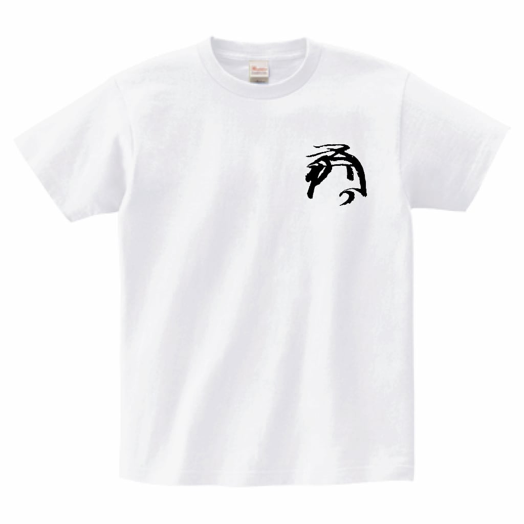 このTシャツでは、元就の花押を左胸に、家紋を背面にあしらい、歴史を“着る”仕様にしました。