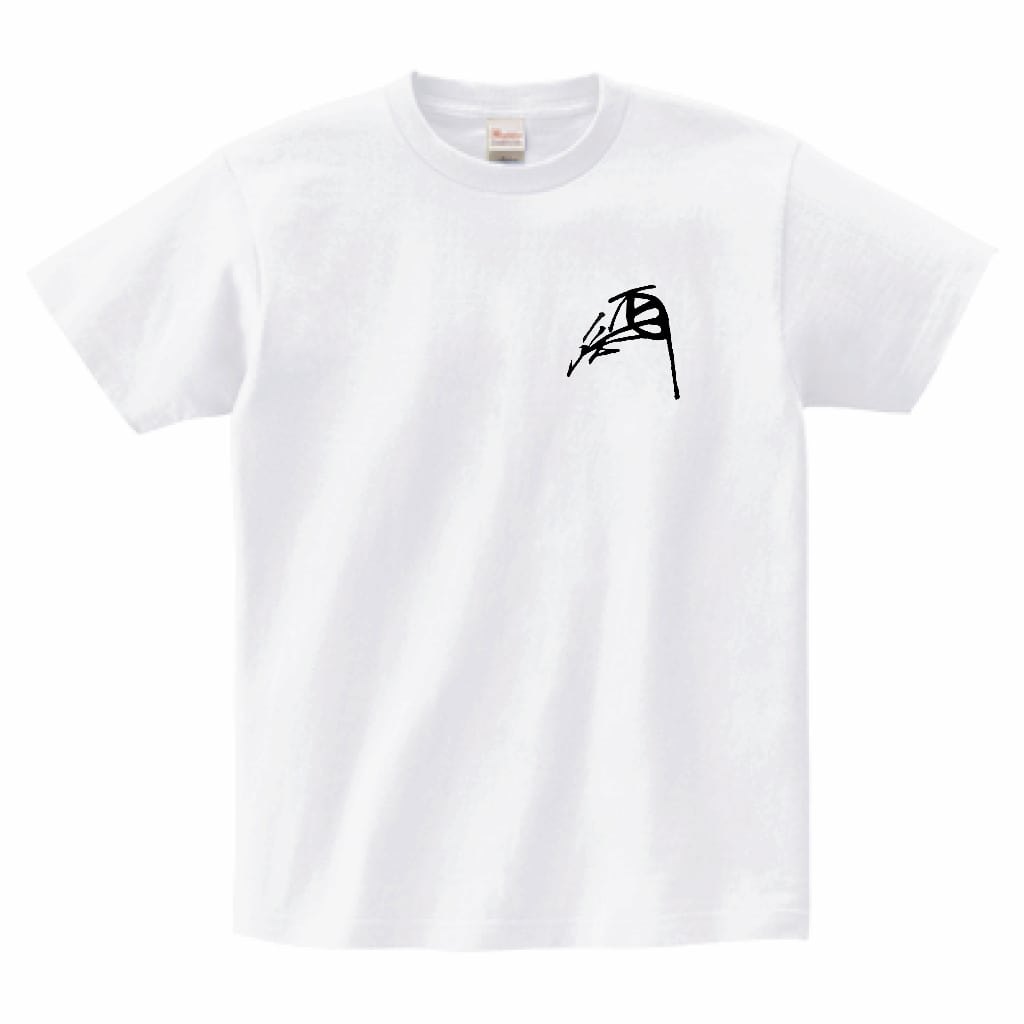 このTシャツでは、隆景の花押を左胸に、家紋を背面にあしらい、歴史を“着る”仕様にしました。