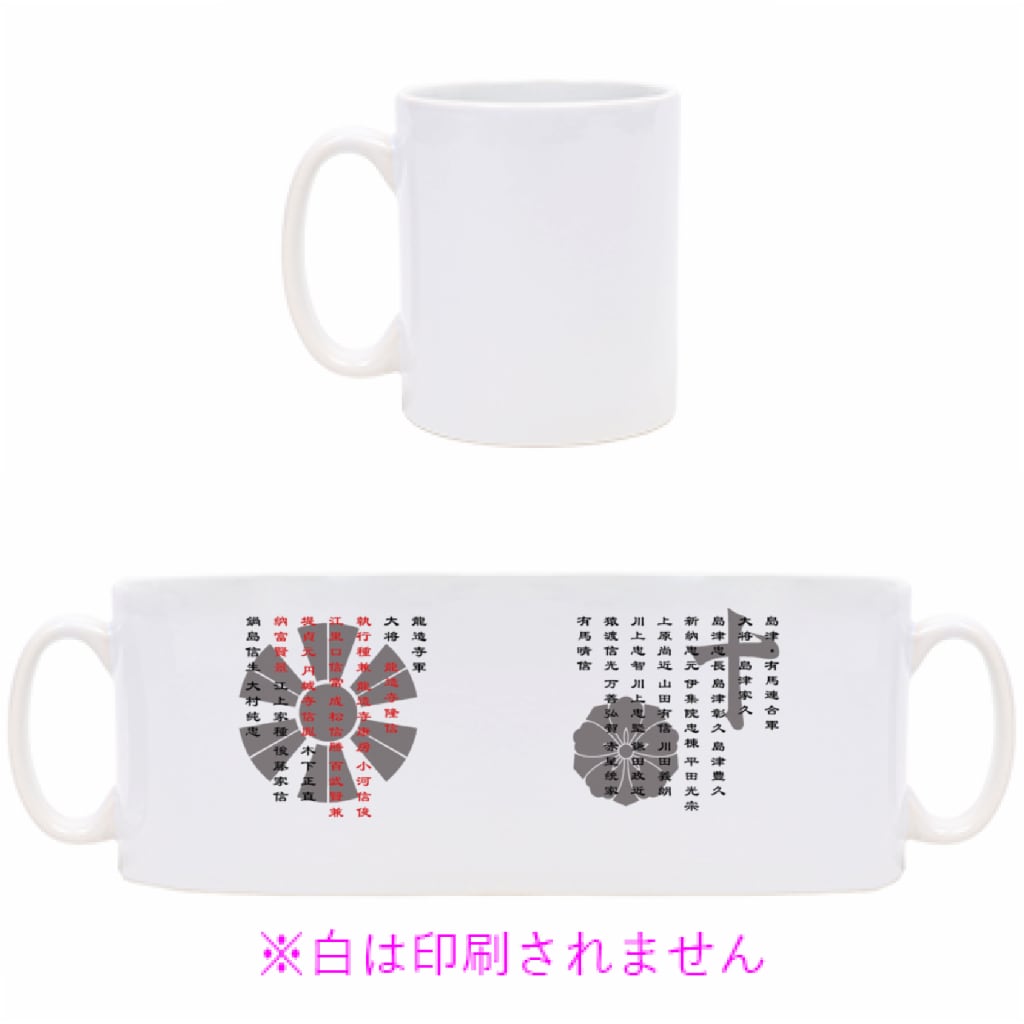 沖田畷の戦い参加武将&島津十字、有馬唐花、変わり十二日足 家紋マグカップ【戦国武将シリーズ】