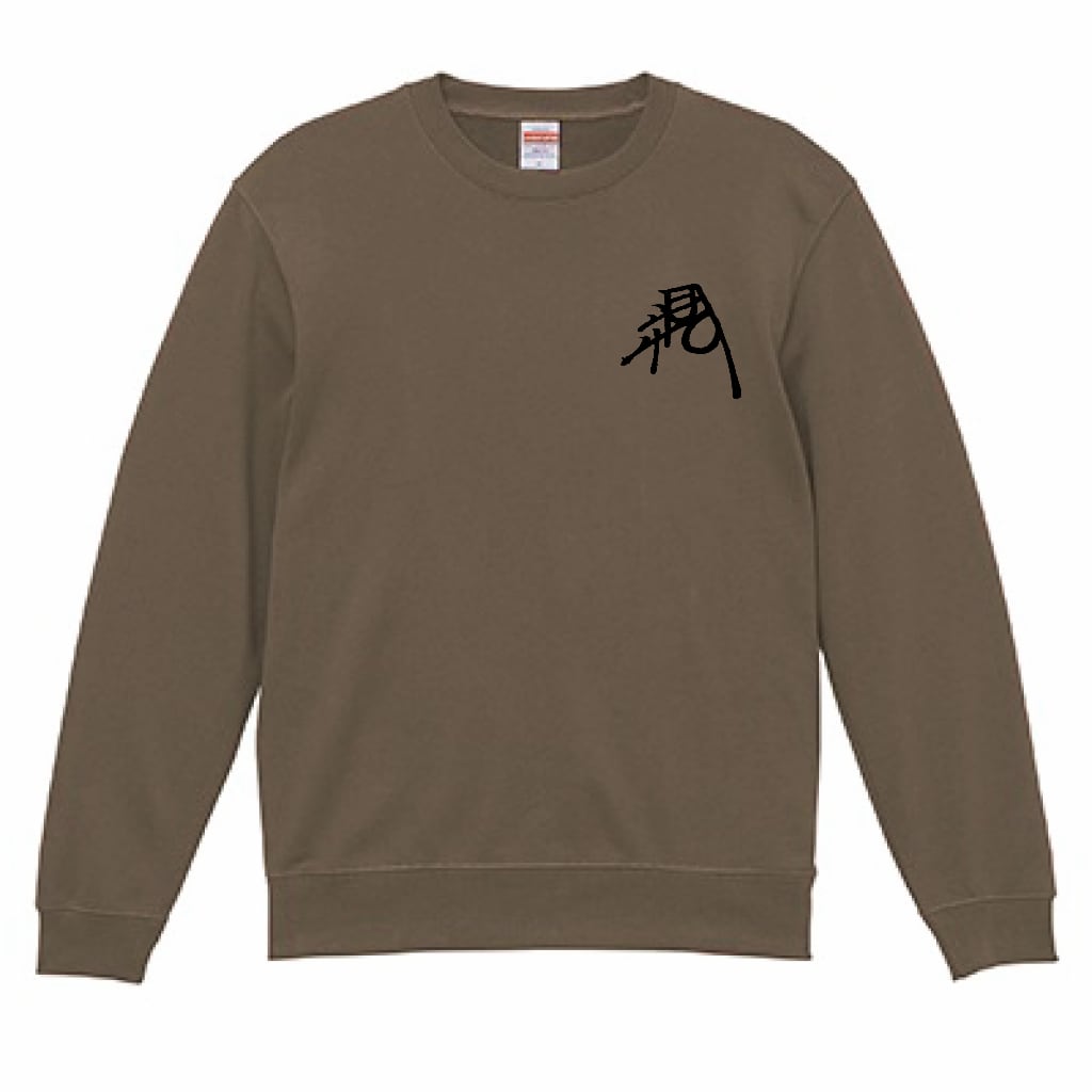 このトレーナーでは、隆信の花押を左胸に、家紋を背面にあしらい、歴史を“着る”仕様にしました。